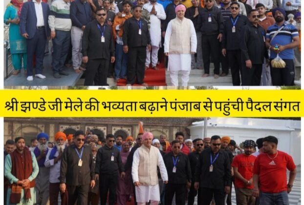 पुष्प वर्षा व श्री गुरु राम राय जी महाराज के जयकारों के साथ हुआ श्री दरबार साहिब में पैदल संगत का भव्य स्वागत